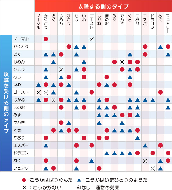 ポケモンタイプ相性表
